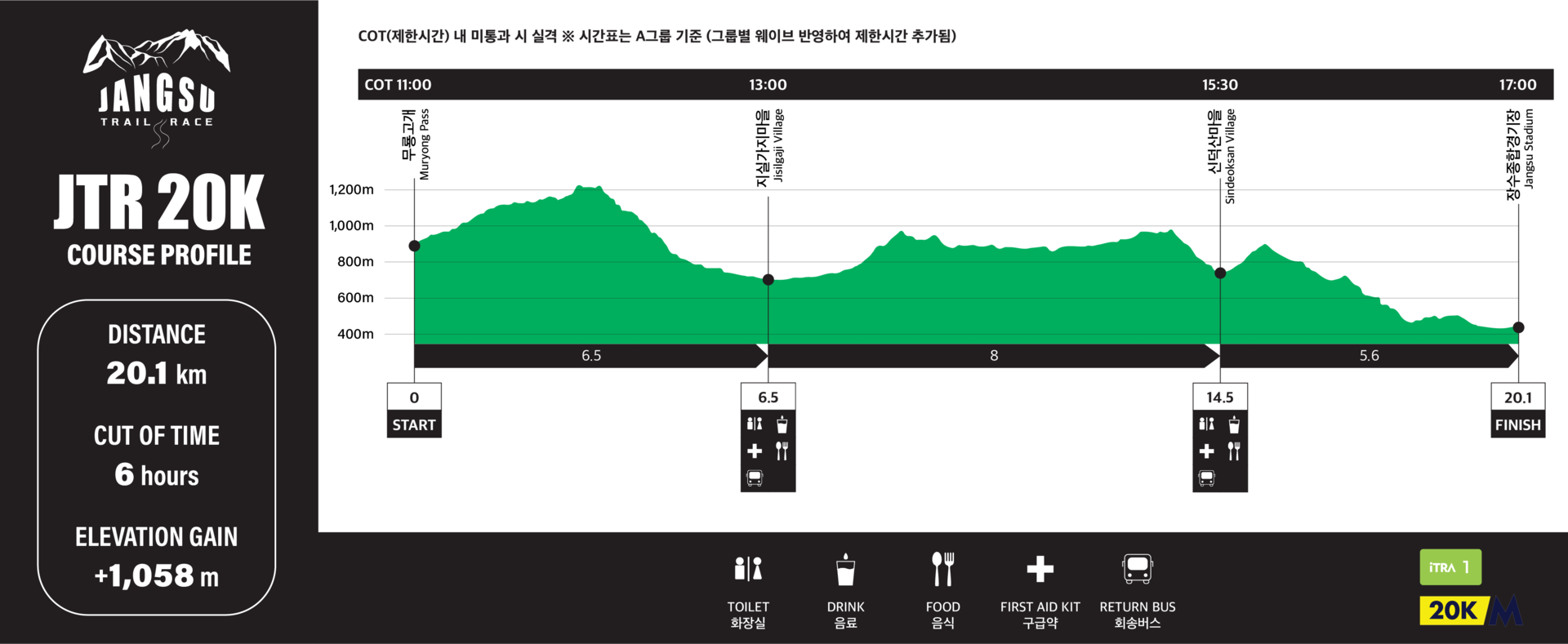 | 장수종합경기장 | FINISH | 20.1 | 5.6 | 6h | 17:00 | 440 | 1058 | 1505 | 220 | 529 |