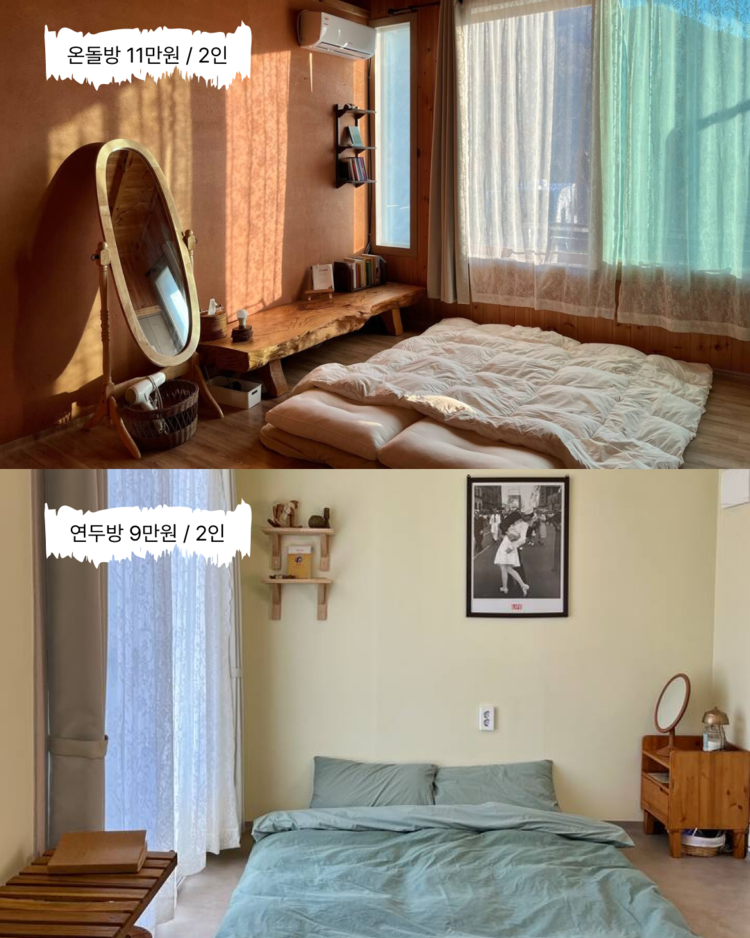 ✅ 숙박 이용 시: 온돌방 11만원 / 연두방 9만원 (선착순 예약)