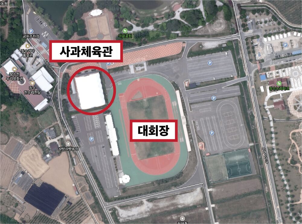 ✔️ 위치: 장수종합경기장 옆 사과체육관 (대회장 도보 1분 거리)